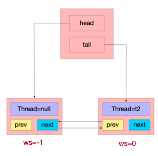 int ws = pred.waitStatus; //⚠️ ws拿的是前一个node t2的waitStatus!